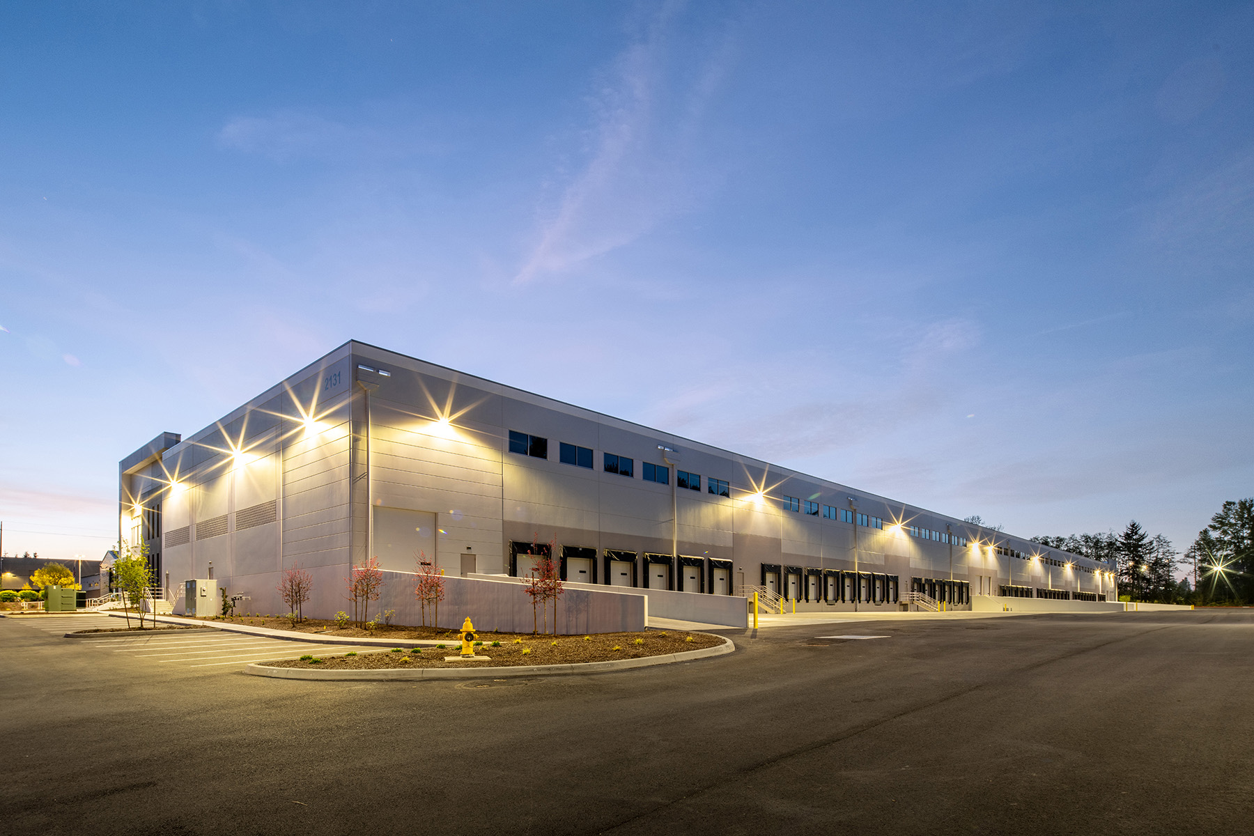 The 125,048 square foot, speculative industrial building features three office nodes, 32' clear height, 45 dock-high and 4 drive-in doors. The 15.5 acre site included 123 parking stalls, a 1,120 linear foot MSE wall, as well as a 540' x 80', 1.8 million gallon cast-in-place stormwater detention vault.
