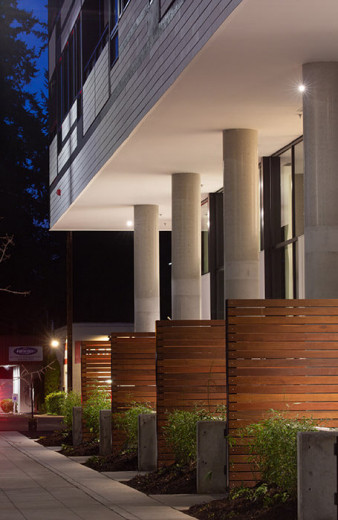 Just blocks from Redmond town center, Blackbird is a six-story apartment building with 1.5 levels of parking. Its 154 units range from studio apartments to 2 bed / 2 bath layouts. The recessed base creates private, covered patios for the five short-term corporate housing units fronting the street.