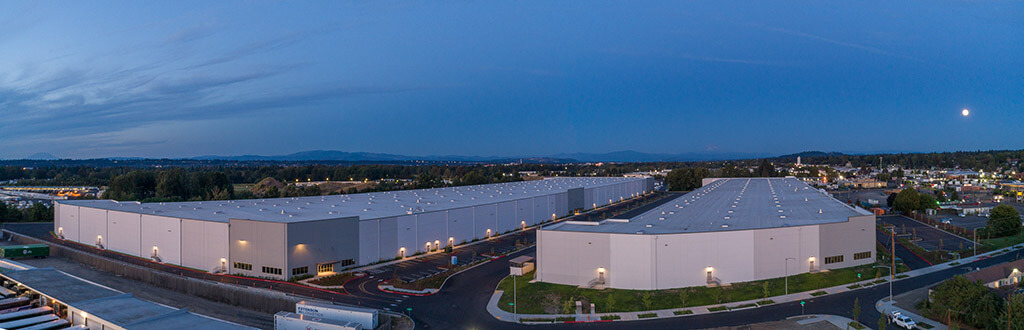 The Bridge Point I-5 project in Portland, Oregon features two industrial tilt-up distribution centers totaling 677,000 square feet.