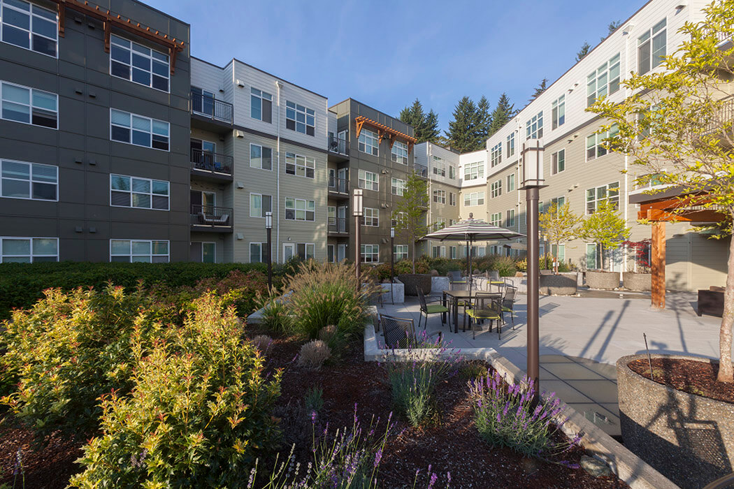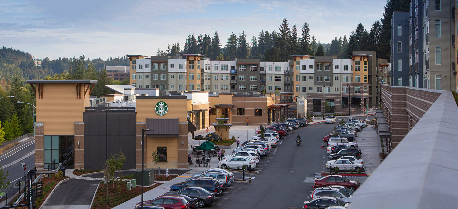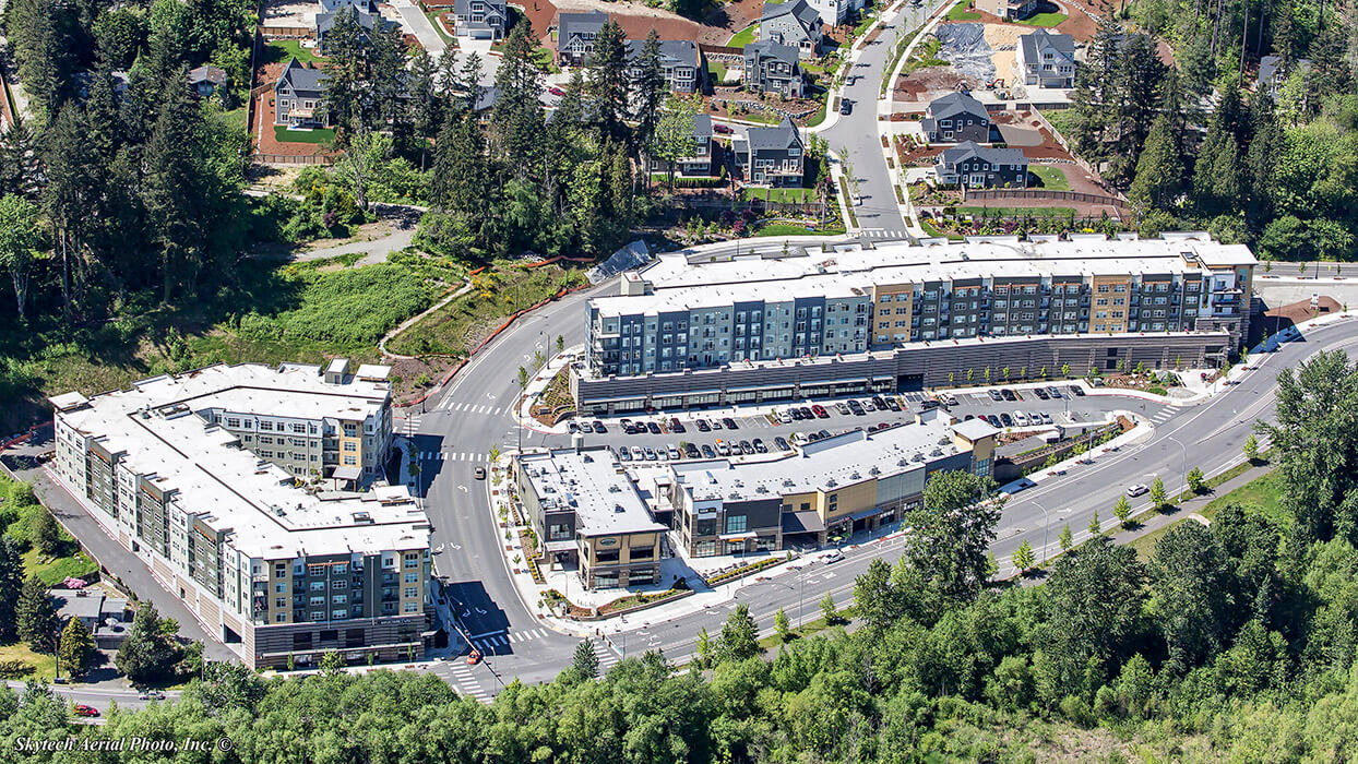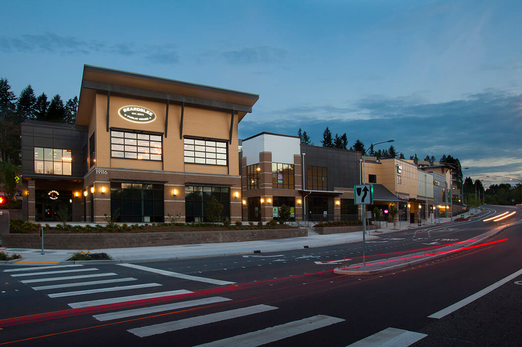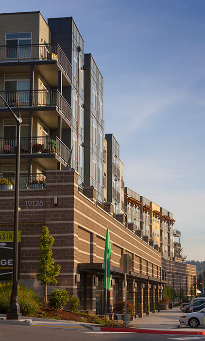 The Village at Beardslee Crossing project included two phases (1A and 2B) of residential and retail apartment buildings totaling 485,098 sq ft with two levels of underground parking, ground level retail space and four levels of wood-framed residential apartments. The 304 market rate apartments include studio, one and two bedroom units ranging in size from 514 square feet to 1,189 square feet. Additional amenities include a fitness center, a club room and an outdoor patio with covered seating areas. The building skin includes a combination of CMU, Hardi-plank and metal panel.