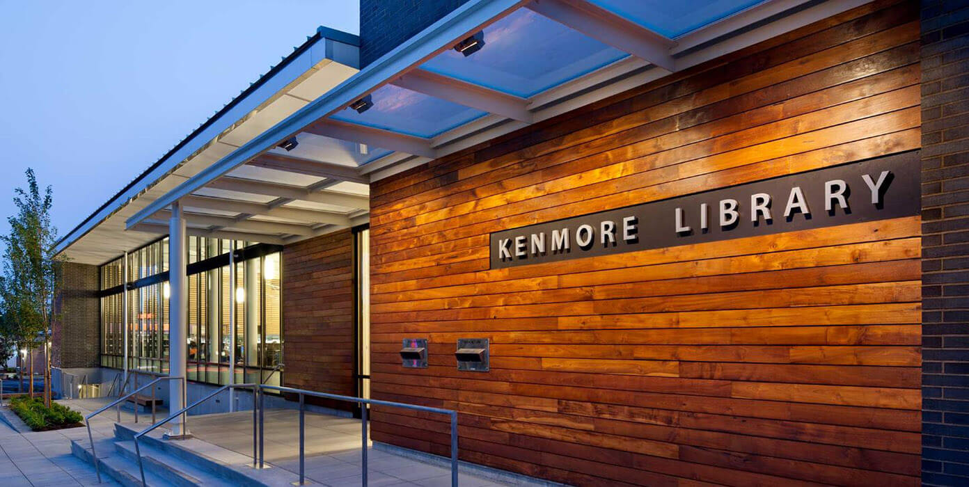 The Kenmore Library is a new 10,000 square foot public library with a 10,000 square foot below-grade parking structure, located in downtown Kenmore, Washington.