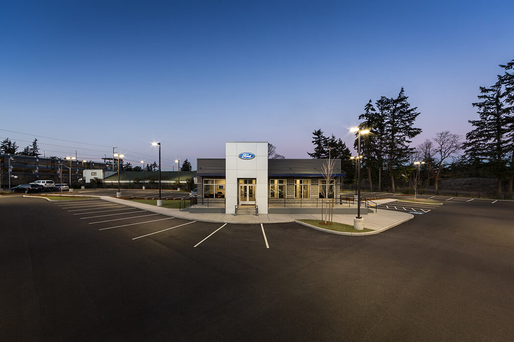 This 63,000 square foot project consisted of a fleet vehicle sales for new and used cars and a service facility for Lakewood Ford, in Lakewood, WA. The site formerly housed mobile buildings and the old Pierce County maintenance facility – all of which were demolished. The development of this new facility was supported by the City of Lakewood, in conjunction with the simultaneous construction of the new Sound Transit southernmost stop and parking garage across Pacific Highway, as well as road and signal improvements. This project continued the revitalization occurring all along Pacific Highway.