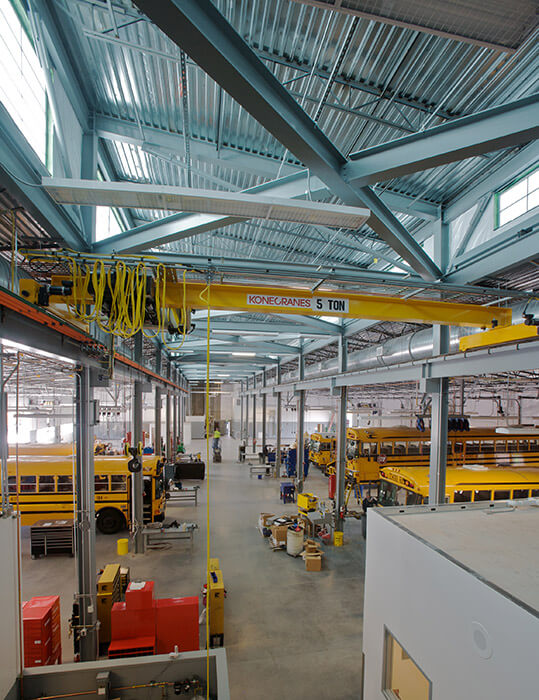 The exterior walls at the maintenance bays are concrete tilt-up with elastomeric exterior paint. The administration offices are steel framed with corrugated and flat metal panels. An in-slab hydronic heating system was installed throughout the entire maintenance bay.