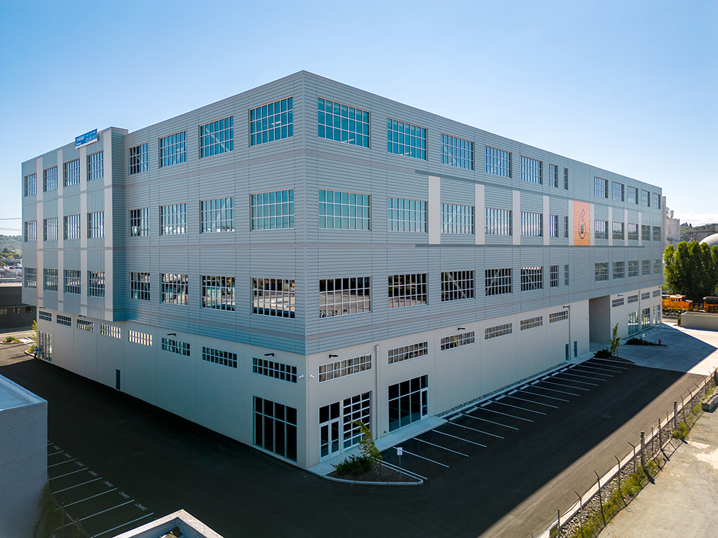 Track Six is a new 85 foot tall, four-story industrial building located on the old Compton Lumber site in the middle of Seattle’s SODO neighborhood. Roughly 55,000 square foot floor plates have brought 212,516 square feet of fresh industrial space to South Seattle. Track 6 can accommodate an array of uses from industrial flex companies to tenants with large warehousing or distribution needs with clear heights ranging from 14' - 24' and demisable down to 13,500 square feet.