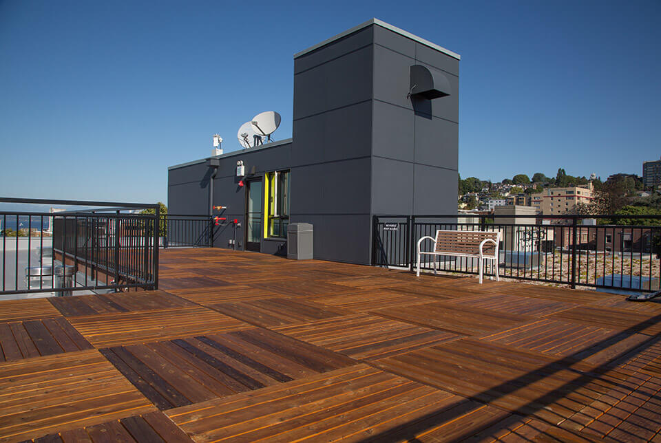 This Queen Anne mixed use project is a 34 unit, three story apartment building with two levels of parking garage. The ground level is dedicated for retail with two residential floors and a 9,500 square foot green roof with 2,145 square foot roof deck. CVS Pharmacy is the main commercial tenant, occupying 16,000 square feet on the main floor. Delivery loading considerations were taken, which required the design to accommodate a pre-existing alley that separates the project from Tribeca Condos. Finishes include glass awnings, mural panels louvers and cement board.